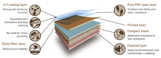 4.超耐磨性:采用高厚度耐磨層和表面進行特殊UV處理,免打蠟,耐污性能。